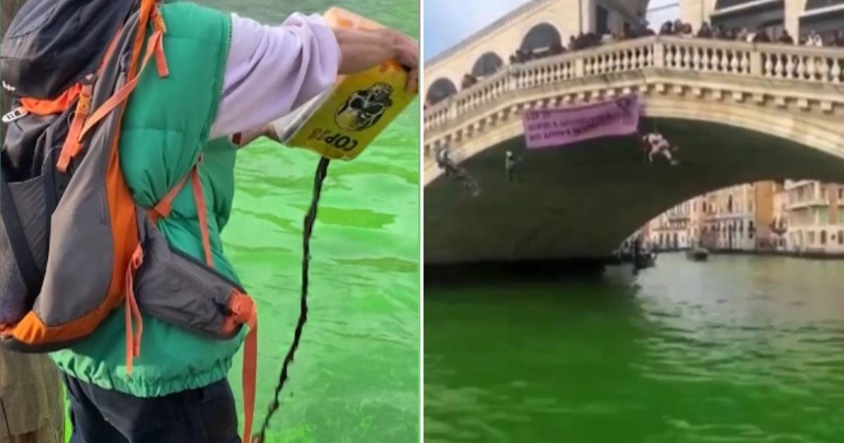 Climate activists from Extinction Rebellion turned the waters of Venice’s Grand Canal green on Saturday. They did this because they believe that the measures adopted at the COP28 climate summit in Dubai are insufficient. They poured (harmless) dye into the canal and hung it with ropes under the Rialto Bridge. The stunt created a lot of interest.